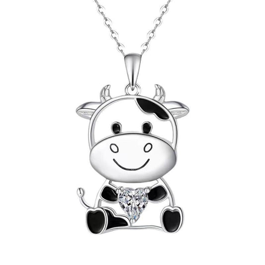 European And American Cartoon Cow BABY HUG Heart-shaped Gem Pendant Necklace