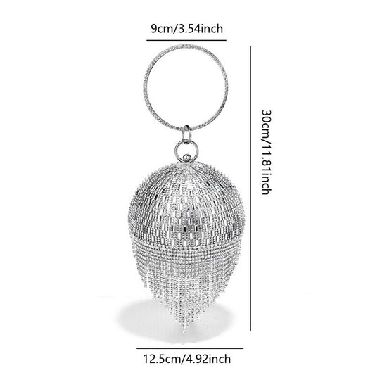 Shining Rhinestone Round Tassel Dinner Bag Women's Fashion