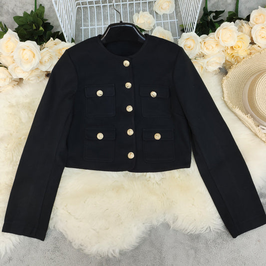Women's Round Neck Pure Color All-matching Woolen Short Jacket