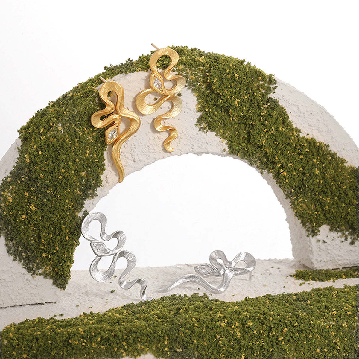 Snake-shaped Texture Inlaid Zircon Stud Earrings Female S925 Sterling Silver Minority All-match