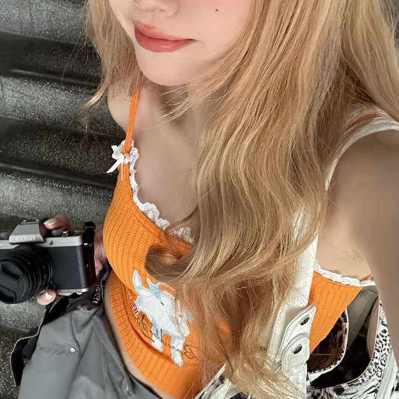 Summer Dopamine Cartoon Letters Printed Camisole